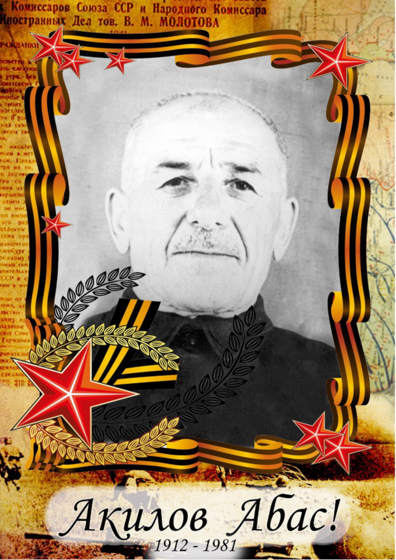 (1915 – 2012). Рядовой. Воевал на Московском и Ленинградском фронтах. Участник Финской компании. Награжден орденом Отечественной войны 2 степени, юбилейными медалями.Дедушка начальника Отдела промышленности и транспорта Правительства Республики Дагестан Абейдуллаева А.У.