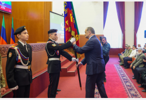 Под этим стягом, подчеркнул глава региона, закаляется характер воина, крепнет сила и выдержка, его нравственная основа.