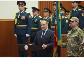 «Берегите знамя батальона. Крепко держите его в руках! Мужественно защищайте наше Отечество. И пусть на вашем знамени будет начертано слово «Победа»! Спасибо вам за службу, и с Богом!», – обратился глава республики к военнослужащим.