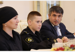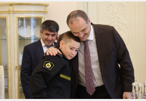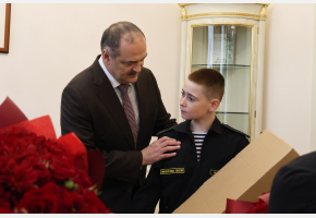 Сын Героя пошел по стопам отца – в этом году он поступил в Нахимовское военно-морское училище. Глава региона поинтересовался учебой Летифа и планами на будущее: