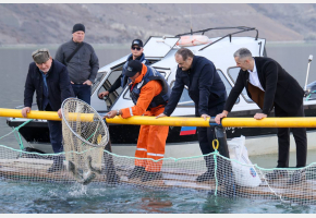Глава региона лично осмотрел производство и покормил рыбу.
