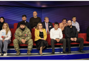 На площадке эфира собрались общественные деятели, эксперты, участники Специальной военной операции, члены их семей, те, кто регулярно ездит в зону СВО с гуманитарной помощью.