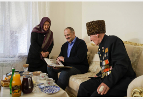 «Спасибо вам, что вы считаете нужным зайти ко мне. Эту «Золотую Звезду» Ибрагим-Паша завоевал в 1945 году, но вручили мне ее только сейчас при помощи Сергея Алимовича. Желаю Вам здоровья!» – сказал ветеран главе региона.