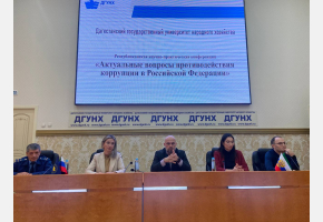 В этот же день в Дагестанском государственном университете народного хозяйства прошла республиканская научно-практическая конференция на тему «Актуальные вопросы противодействия коррупции в Российской Федерации» в работе которой приняли участие заместитель министра юстиции РД Закавова Р.А., заместитель начальника отдела Управления Главы РД по вопросам противодействия коррупции Нагиева Ф.Т., старший помощник прокурора г. Махачкалы Гасанбеков Т.Г., сотрудник Управления Минюста России по Республике Дагестан и представители органов исполнительной власти Республики Дагестан.