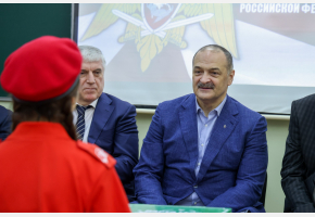 Сегодня, 27 марта, в День войск национальной гвардии России глава Дагестана Сергей Меликов посетил среднюю школу №46, носящую имя героя России Марата Молчанова, чтобы лично пообщаться с учащимися специализированного росгвардейского класса.