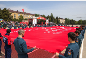 Акция «Знамя Победы» стала доброй традицией последних лет и уверенно шагает по республике – знамя развернули в 45 муниципалитетах региона, участие приняли более 100 тысяч дагестанцев.