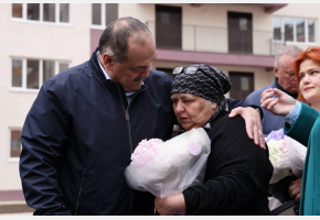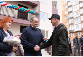 Перед началом церемонии они осмотрели новые многоквартирные дома, построенные для переселенцев, а затем лично вручили ключи новоселам и пообщались с жителями.