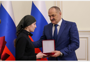 Сегодня, 8 ноября, глава Дагестана встретился с родными офицера Абдурахмана Кучакаева. Высшую награду республики из рук главы региона получила вдова военнослужащего Дженнет Кучакаева. На церемонии присутствовали мать офицера Айбике Казимова и его отчим Руслан Магомедов.