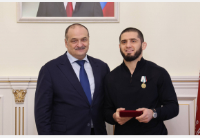 Ислам Махачев награждён медалью «За заслуги в области физической культуры и спорта». Государственную награду Дагестана чемпиону UFC вручил сегодня, 25 ноября, Сергей Меликов. Такой же медалью был отмечен тренер бойца Сейфула Магомедов.