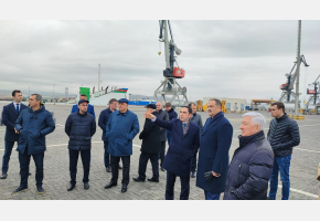 В первую очередь глава региона посетил Бакинский международный морской торговый порт, который является важным пунктом транзитной инфраструктуры, соединяющей Европу с Азией. В его состав входят различные терминалы: пассажирский, нефтяной, главный грузовой, паромный и контейнерный.