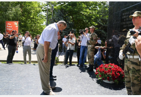 Сегодня, 22 июня, в День памяти и скорби глава Дагестана Сергей Меликов возложил цветы к Вечному огню у памятника Воину-Освободителю в парке им. Ленинского Комсомола.