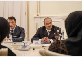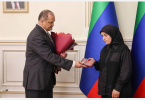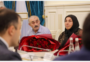На встречу с главой региона пришли супруга воина Марият Хурбекова, его родители – Патимат Пайзулаева и Гимбат Хурбеков, дядя военнослужащего Магомедкасум Пайзулаев.