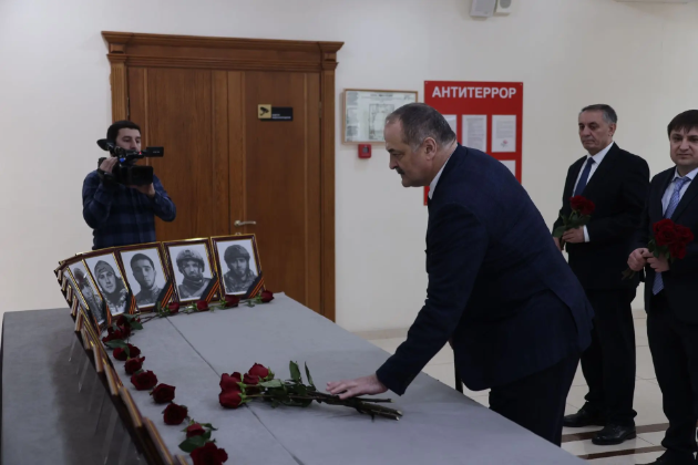 Сегодня, 25 марта, Глава РД Сергей Меликов встретился с родными участников СВО. Перед началом встречи он возложил цветы к портретам павших при исполнении задач воинов и почтил их память минутой молчания.