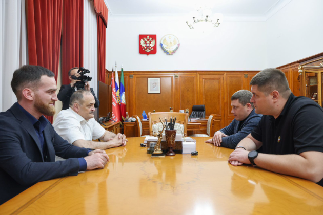 Глава Дагестана Сергей Меликов встретился с участниками программы развития «Время героев» Темирланом Абуталимовым, Александром Урюпиным и Владимиром Горохом