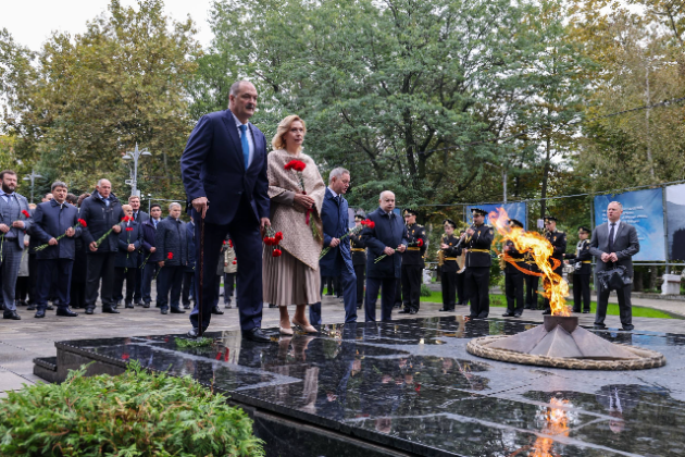 Сегодня, 2 октября, Глава Дагестана Сергей Меликов вместе с участниками Международного форума «Устойчивое развитие горных территорий» возложил цветы к Вечному огню у памятника Воину-Освободителю в Махачкале.